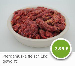 Das gewolfte Pferdemuskelfleisch (1kg) von BARF-factory.de zählt zu den beliebtesten Produkten unseres Hauses für alle allergischen Tiere. Pferdefleisch ist sehr reich an Eisen und hat einen natürlichen Taurin-Anteil. Daher ist dieses Produkt zur Fütterung von Hunden und besonders auch Katzen geeignet und zu empfehlen. Besonders geeignet ist dieses Produkt auch bei Futterumstellung bzw. Frischfleischgewöhnung von Welpen und Kitten.
