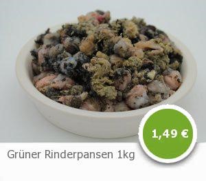 Grüner Rinderpansen ist ein wichtiges Futtermittel beim barfen und trägt zu einer ausgewogenen und optimalen Ernährung bei. Die Zusammensetzung des Pansen enthält alle lebensnotwendigen Vitamine, Mineralstoffe, Spurenelemente sowie Bakterien und ist ideal zur Umstellung auf die Rohfleischfütterung geeignet. Ein Hund der ausschließlich mit Dosenfutter bzw. Trockenfutter ernährt wird, hat einen sogenannten sterilen Magen und kann frische Produkte nicht sofort gut annehmen. Die Folgen dessen sind oft Übelkeit bis zum Erbrechen und Durchfall. Darum empfehlen wir Ihnen bei der Futterumstellung Pansen zu füttern.